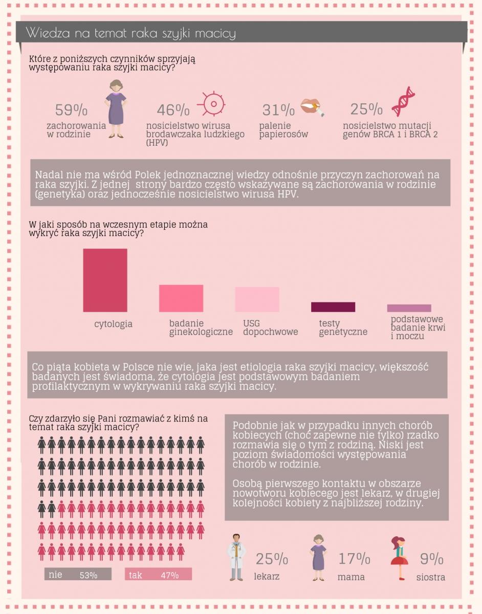 Jak wynika z badania nadal nie ma wśród Polek jednoznacznej wiedzy odnośnie przyczyn zachorowań na raka szyjki. Jednocześnie – jak podkreśla Marta Rybicka z IQS „nadal co piąta kobieta w Polsce nie wie, jaka jest etiologia raka szyjki macicy, choć większość badanych jest świadoma, że cytologia jest podstawowym badaniem profilaktycznym w wykrywaniu raka szyjki macicy. Większość kobiet, które trafnie wymieniają zakażenie wirusem HPV jednocześnie jako przyczynę wskazują zachorowania w rodzinie. Dotyczy to także kobiet z najbardziej świadomych grup (młode, wykształcone, z dużych miast). O czym to świadczy? Obecnie dużo mówi się