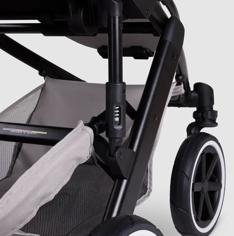Wózek Salsa 5 Air wyposażono w system inteligentnej amortyzacji, który skutecznie redukuje wstrząsy. Dzięki temu Twoje dziecko będzie podróżować w komfortowych warunkach – bez względu na to, czy spacerujesz po ulicach miasta, czy wyboistych ścieżkach w lesie, niezależnie od warunków atmosferycznych i pory roku.