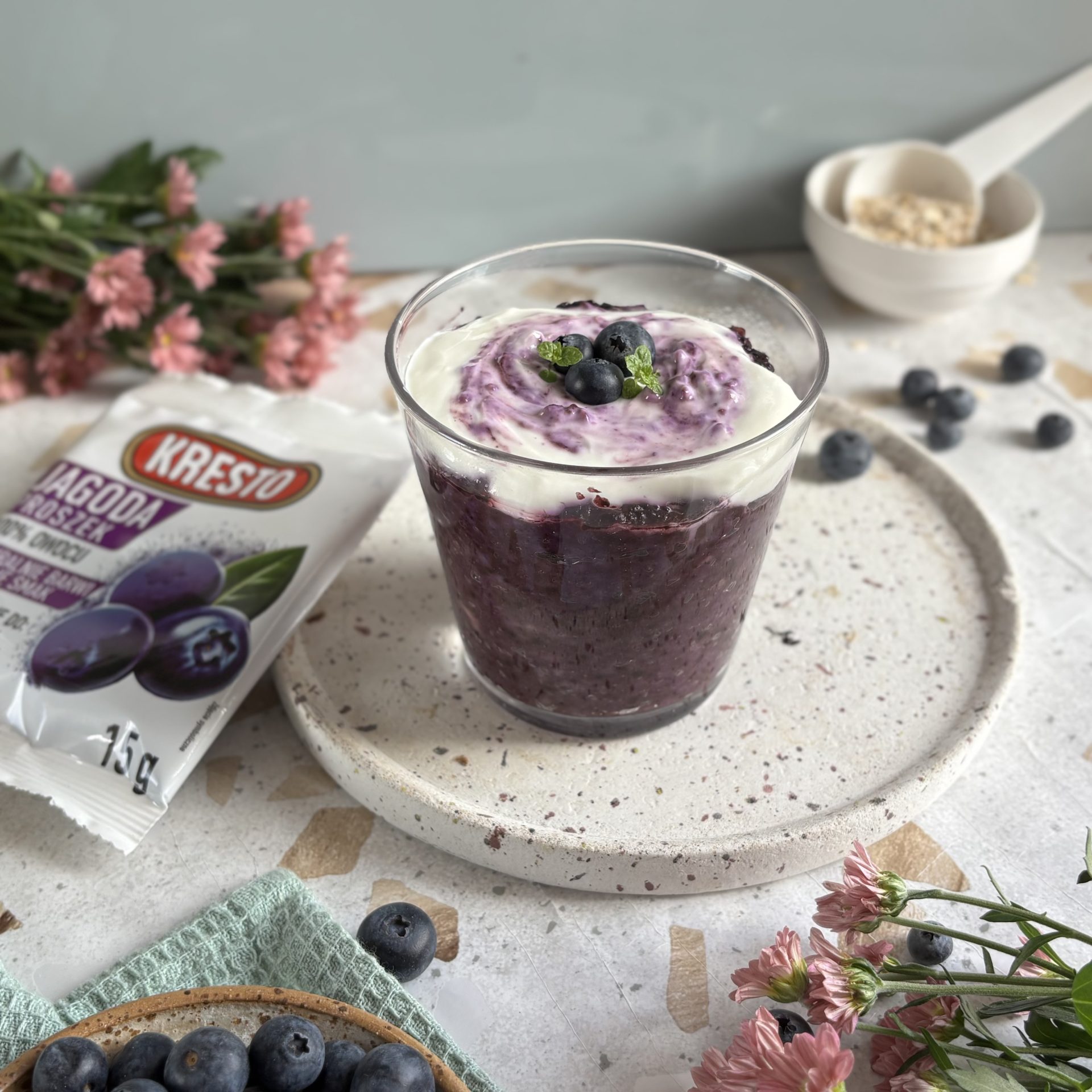 Kremowa, delikatnie słodka i intensywnie jagodowa. Ta owsianka to idealny sposób na spokojny poranek — naturalna słodycz banana, głęboki kolor i smak liofilizowanych jagód KRESTO oraz lekka jogurtowa chmurka, która otula całość. Składniki: • 50 g płatków owsianych górskich...
