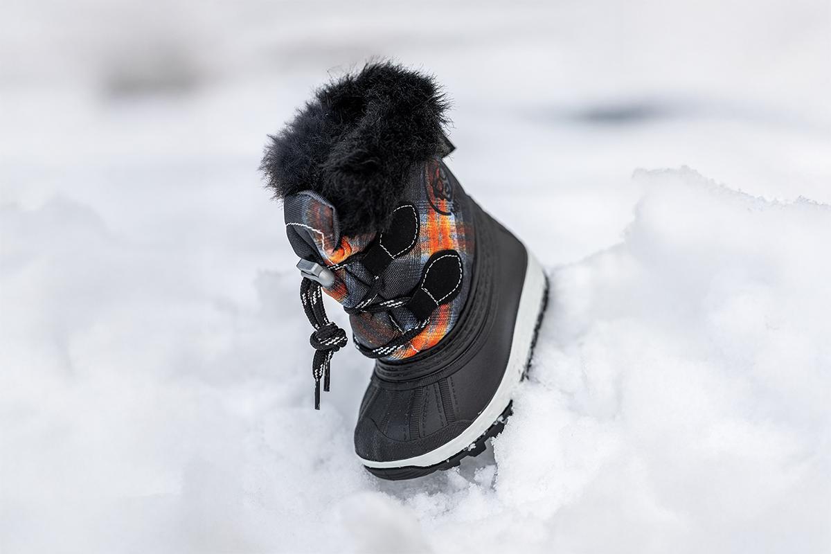 • regulowane zapinanie na sznurek ze stoperem pomaga szybko założyć buty i dopasować je do stóp dziecka, co zapewnia maksymalny komfort w mroźne dni.